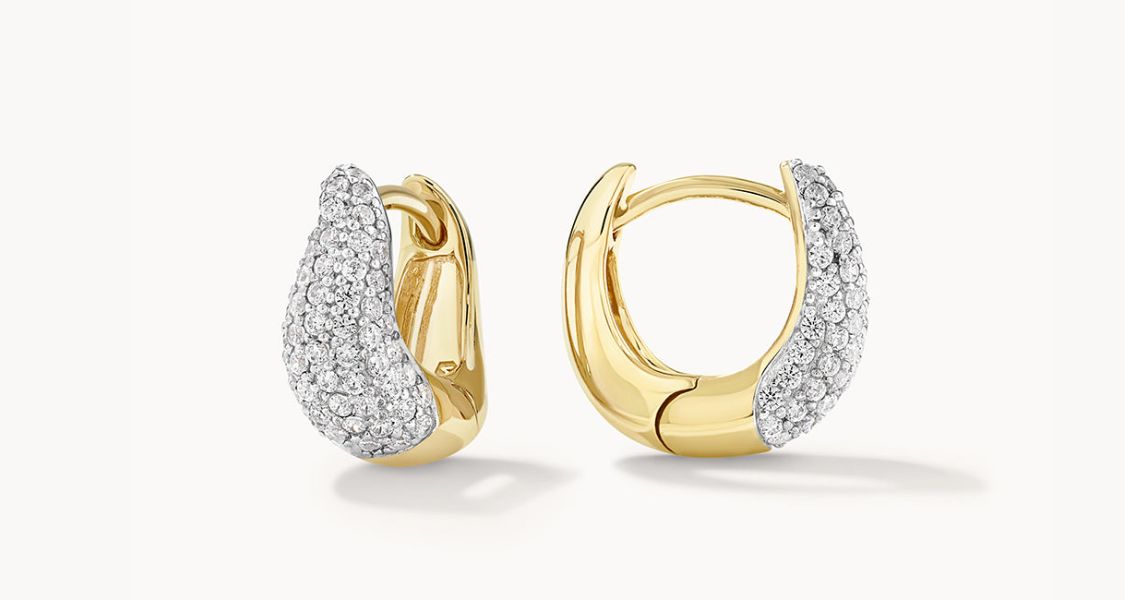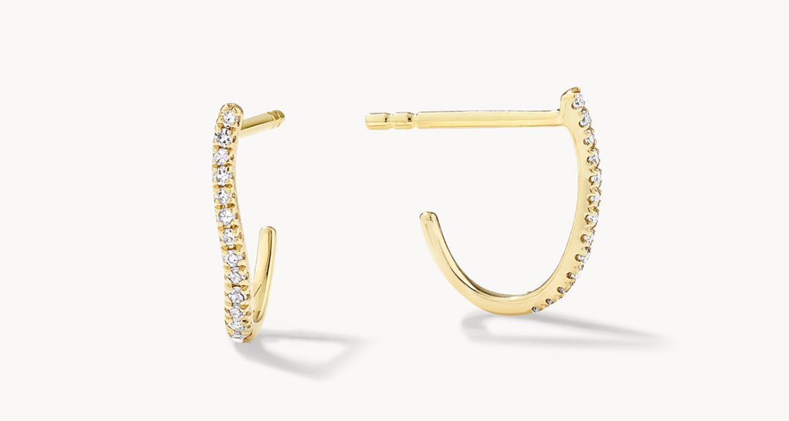 Diamond Fine Wave Huggie Earrings in 10k Gold VS Mini White Topaz Pave Wave Dome Huggies in 18k Fine Gold Plated