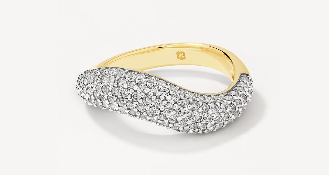 Diamond Fine Wave Stacker Ring in 10k Gold VS White Topaz Pave Wave Dome Ring in 18k Fine Gold Plated