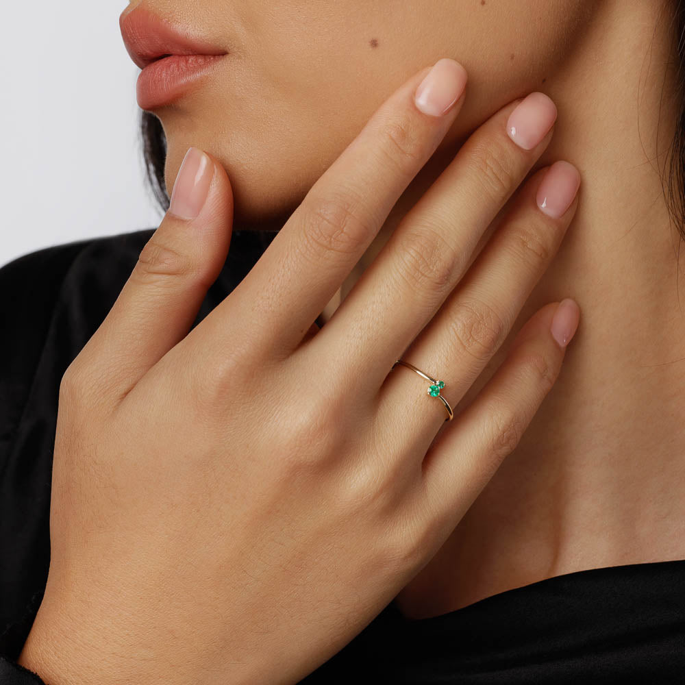 Emerald and yellow gold are made for each other, with gold creating the perfect contrast to bring out the brightness of your emerald. Stack your emerald ring with gold rings, or add a dainty emerald helix earring to a golden ear stack.