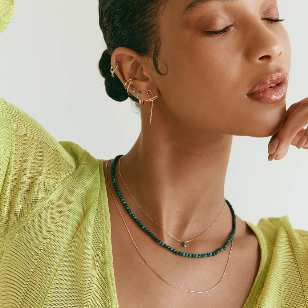 Draw attention to your precious emerald pieces by stacking two or more styles together. A curated ear stack dominated by deep green emerald is a uniquely modern way to wear this trending yet timeless gem.