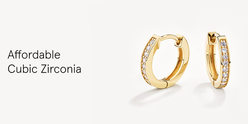 Gorgeous glitter, at the price you want. Cubic Zirconia (CZ) is what's known as a 'diamond simulant.' It's a synthetic stone made from zirconium dioxide, and it's made to imitate the look of a diamond. It's a great alternative for fashion jewellery, since it's super tough and really affordable.