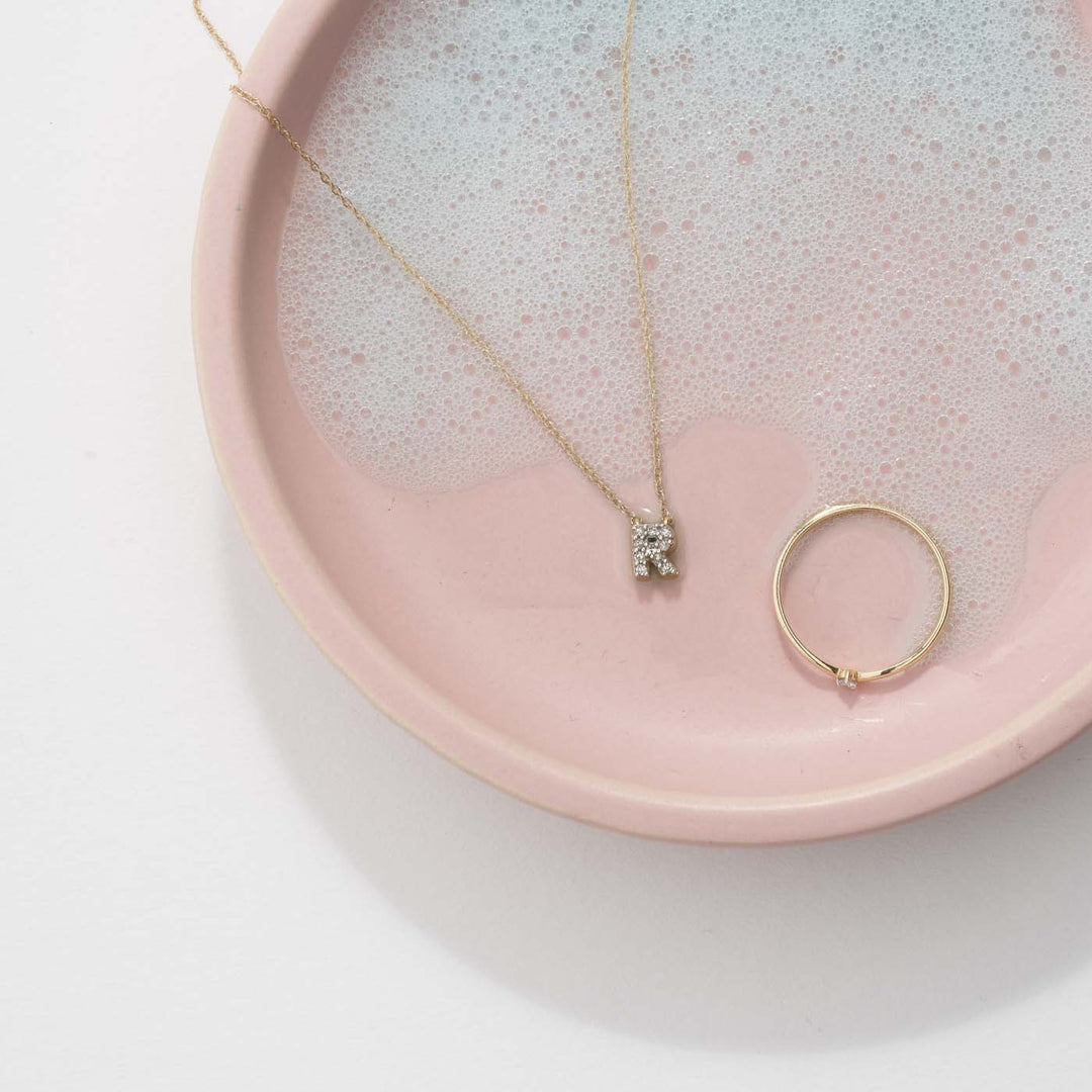 Give your diamond jewellery a bath in warm soapy water for about 20 minutes to remove any built-up dirt and oil.