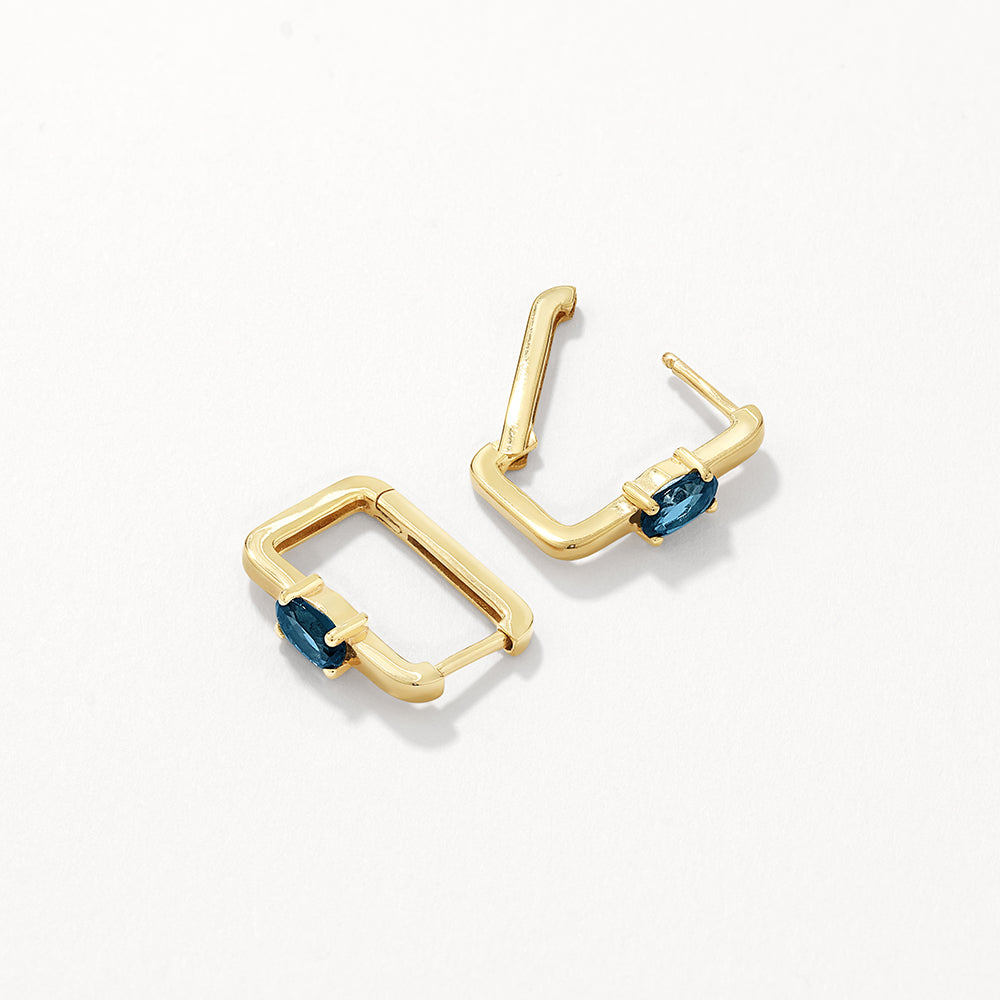 Blue Topaz Paperclip Hoop Earrings in Gold