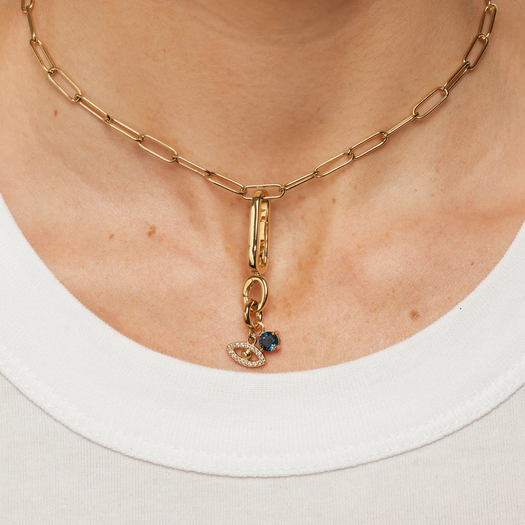 Add a personal touch to your look with this blue topaz charm. Believed to represent calmness, clarity, and communication, this gemstone charm features a London Blue topaz stone, crafted in 18k fine gold plating. Featuring a compressible adaptor, you can clip this collectable charm onto your favourite chain or bracelet. Use our pendant connectors as an adaptor to wear on any chain, or pair with our specially-designed charm bracelets and necklaces.