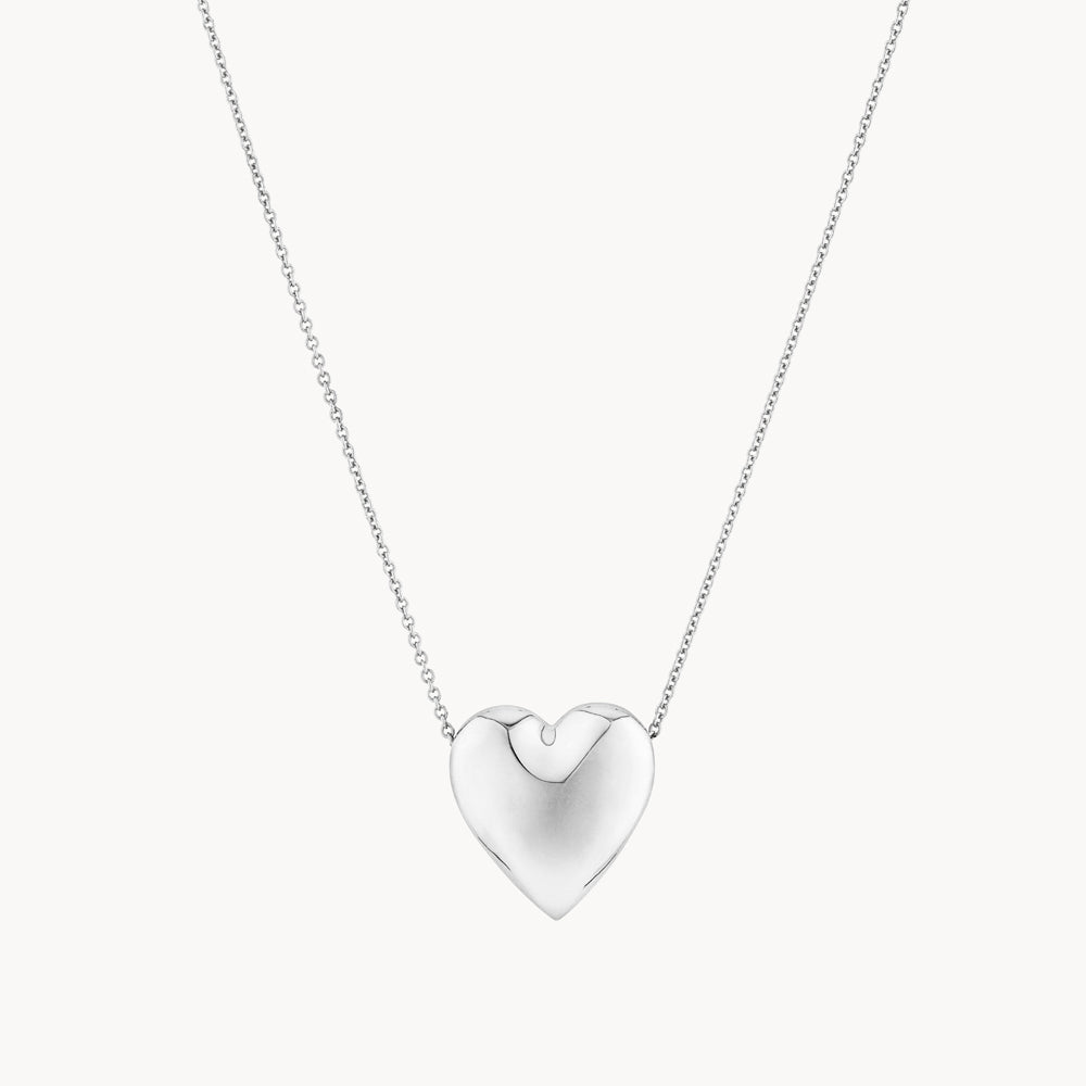 Embrace romantic design with this heart-shaped pendant. This silver necklace features a puff heart pendant, for a classic and whimsical piece of love-inspired jewellery. Crafted in Sterling Silver