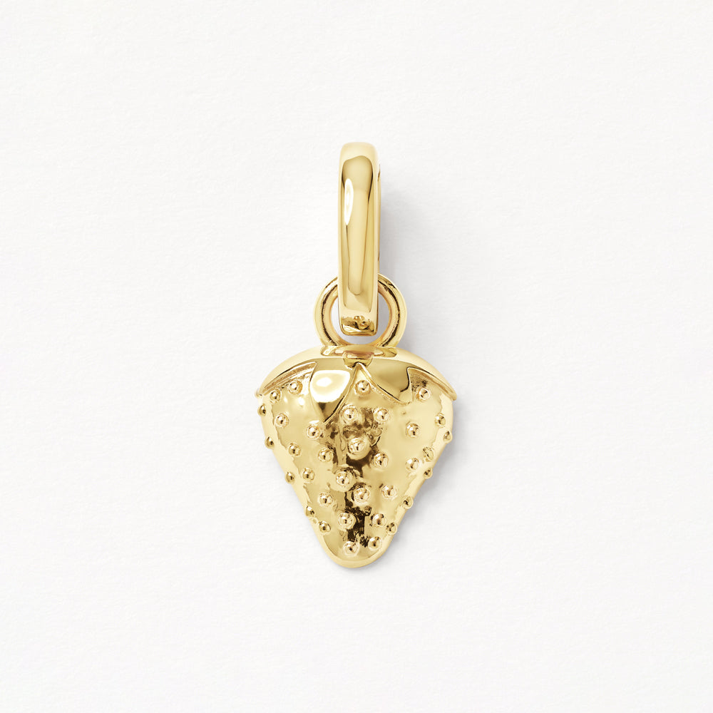 Bring a unique, playful touch to your look with this gold strawberry charm. Crafted in 18k fine gold plating, this strawberry pendant is perfect for your own collection or to give as a gift. Featuring a compressible adaptor, you can clip this collectable charm onto your favourite chain or bracelet. Use our pendant connectors as an adaptor to wear on any chain, or pair with our specially-designed charm bracelets and necklaces.
